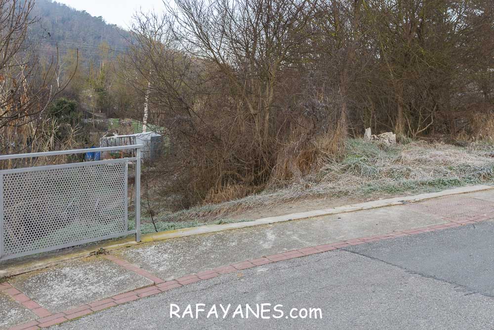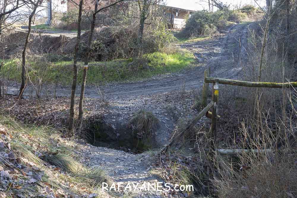 Voy caminando dirección al pueblo hasta llegar a un punto donde me desvío a la izquierda para pasar por encima de un pequeño puente que me lleva hasta unos huertos.