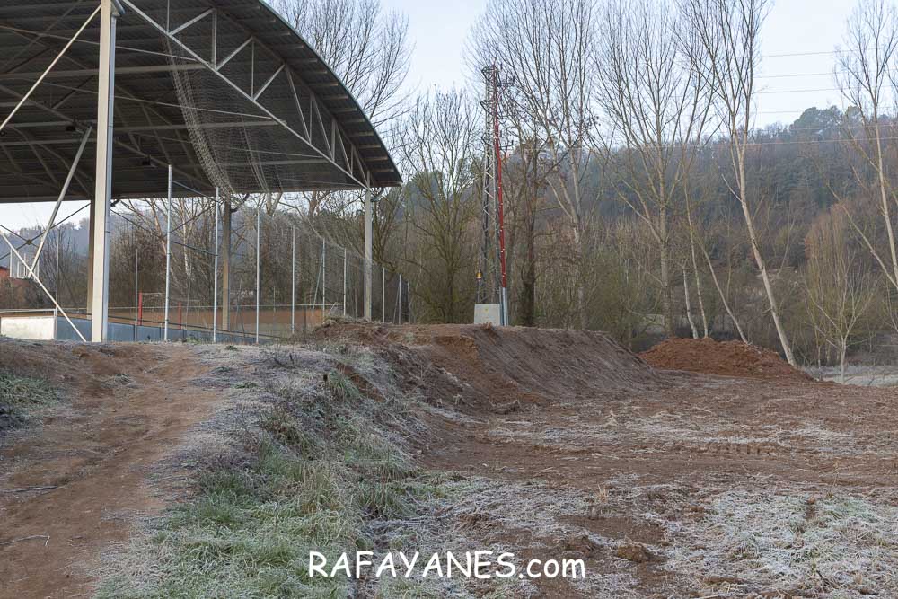 Pasados estos huertos, llego hasta el pabellón municipal, lo bordeo, paso otros huertos y llego hasta la carretera Avinguda de Muntanyola.