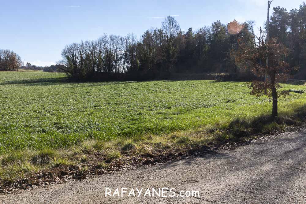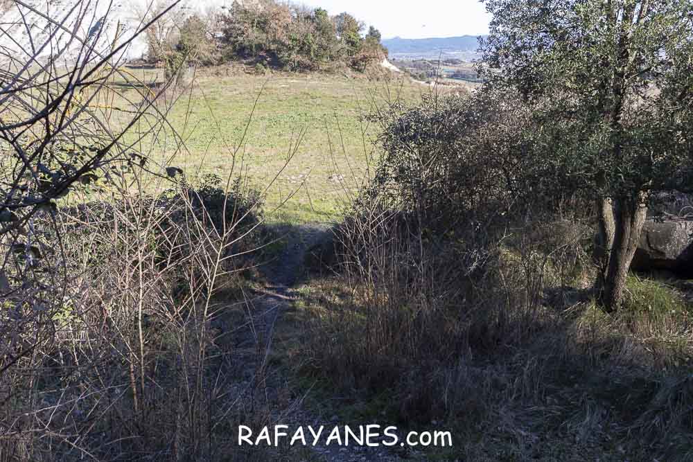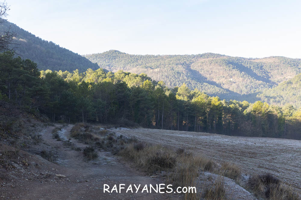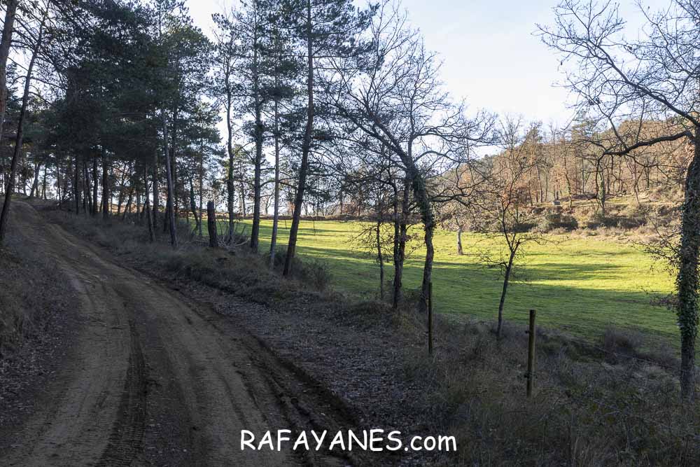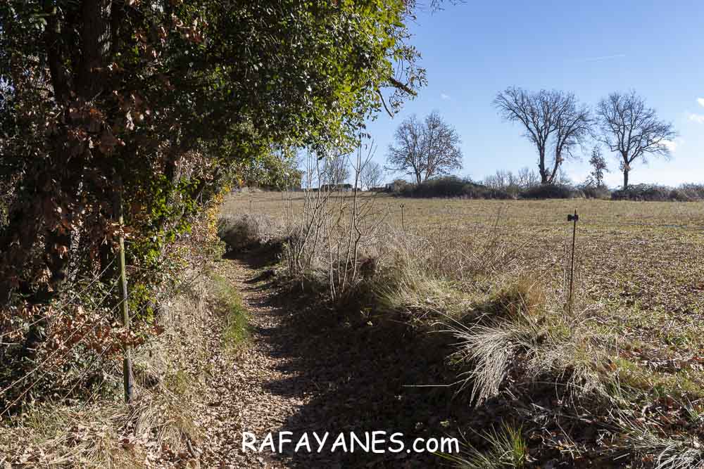 Esta pista pasa entre campos y se hace estrecha junto en el momento que la he de dejar para desviarme a la izquierda para ir hasta la primera cima de hoy: Fonfreda.
