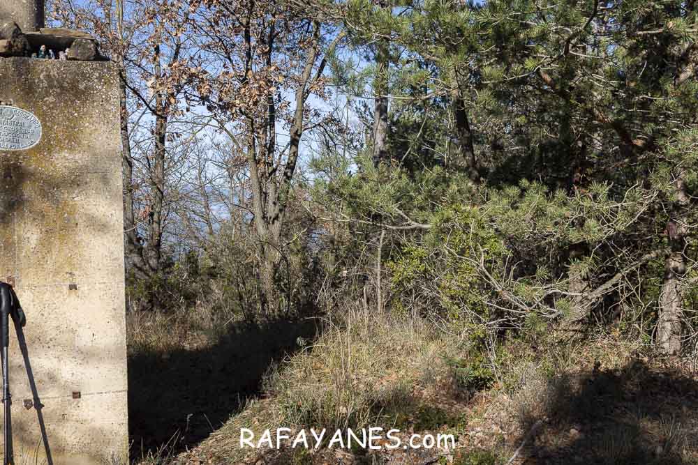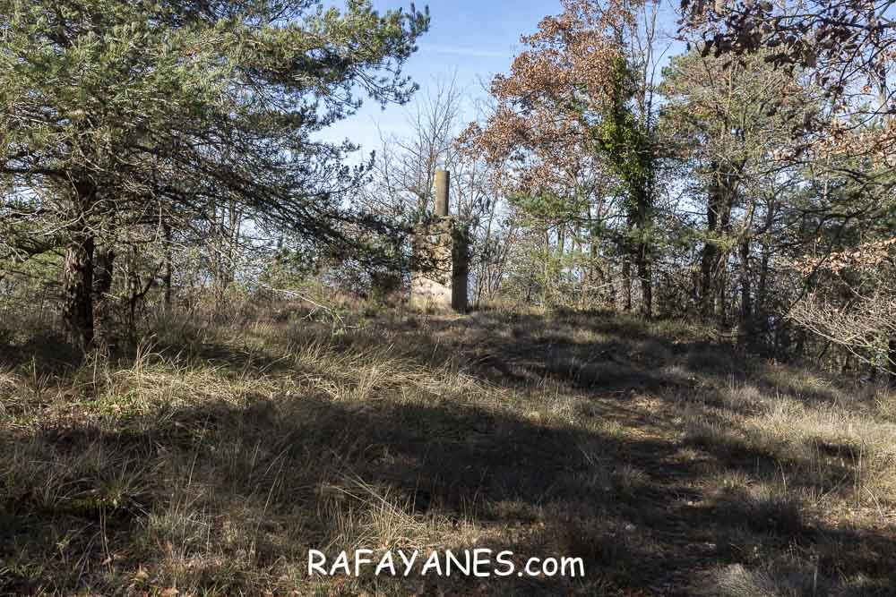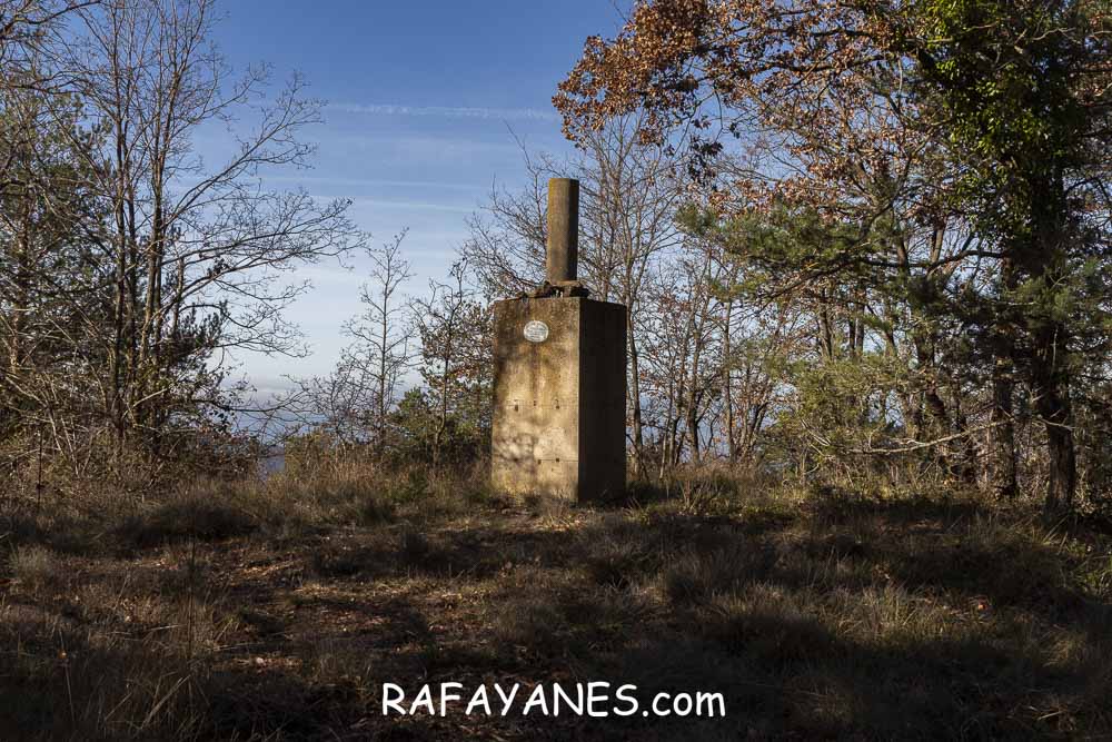 El sendero estrecho y entre un pequeño bosque, lo tendré que recorrer dos veces: a la ida y a la vuelta. Al final del sendero, me encuentro el vértice geodésico.