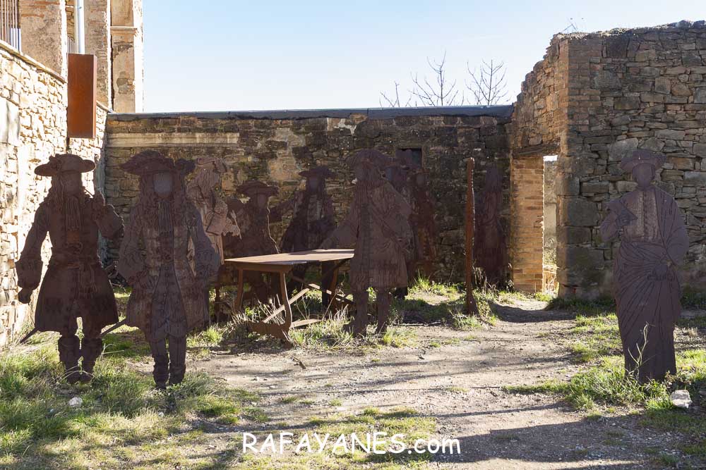Empiezo a buscar el Vértice Geodésico y no lo encuentro. Le doy vueltas y vueltas a la ermita y no hay forma. Lo que sí veo son unas siluetas de hierro representando una escena de lo que se vivió en Cataluña en el 1714.