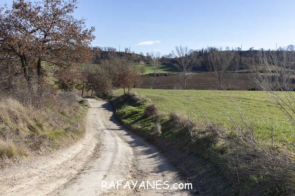 Una vez en ella, y para no hacerme pesado explicando, todo será durante laaaaargo rato por pista, combinando sendero, campos de cultivo, masías y explotaciones ganaderas…así hasta llegar, mediante un sendero estrecho a Sant Sebastià.