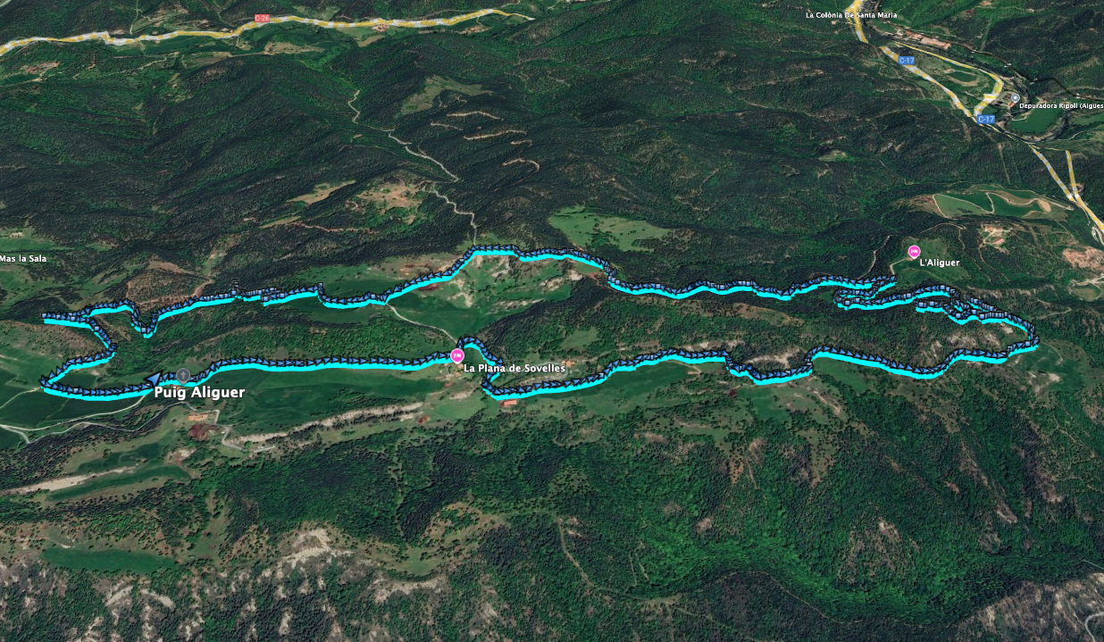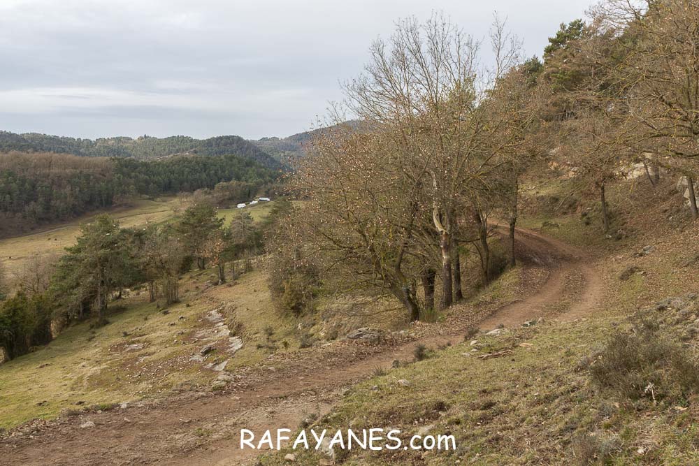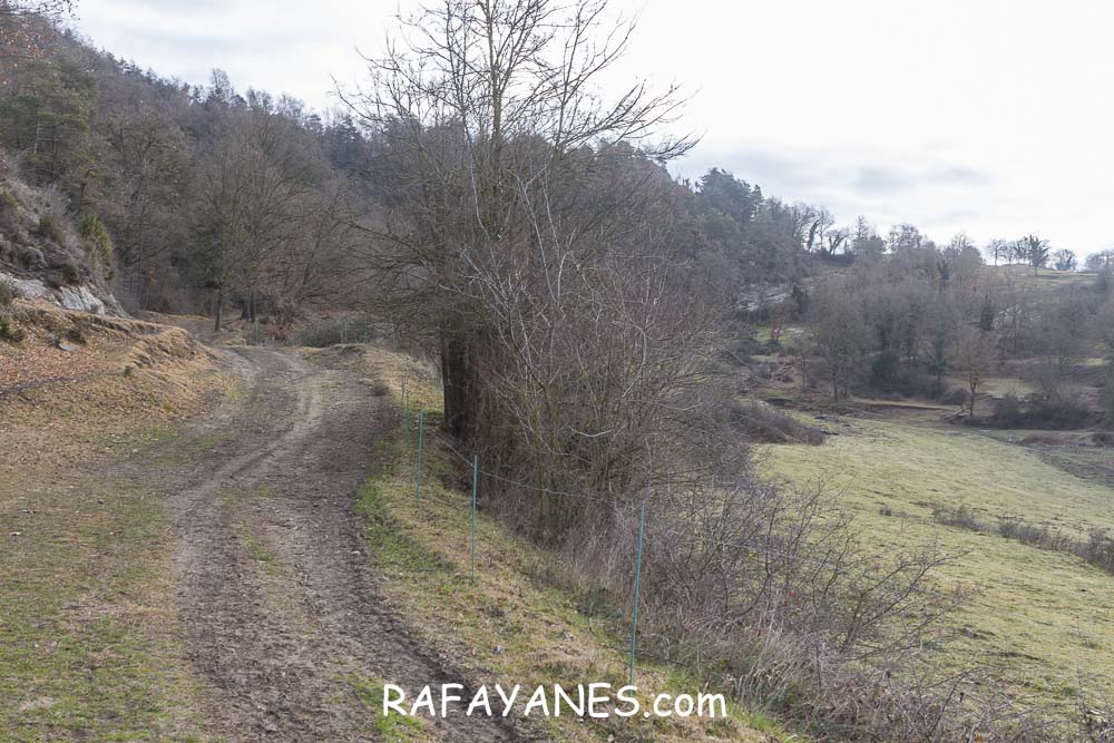 A partir de ahora, todo será seguir la pista con algún tramo de subida, llegar hasta la masía El Grau, atravesar el campo sin cultivar (por unos grandes perros que hay justo en la carretera por la que he de pasar) y llegar hasta la furgo.