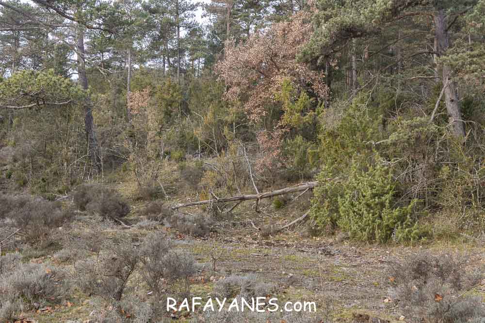 Llego hasta el final de éste y he de adentrarme en el bosque. Aquí viene cuando he de guiarme otra vez con el GPS porque la zona está mucho más perdedora.