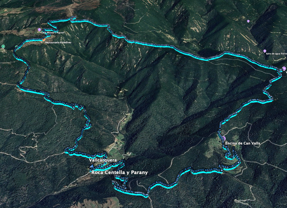 Para el inicio de la ruta, me voy hasta una zona muy recóndita del parque, entrando por el pueblo de Figaró y llegando justo al lado de la Rectoria de Vallcàrquera. Te recomiendo que veas el track de Wikiloc para ubicarte.
