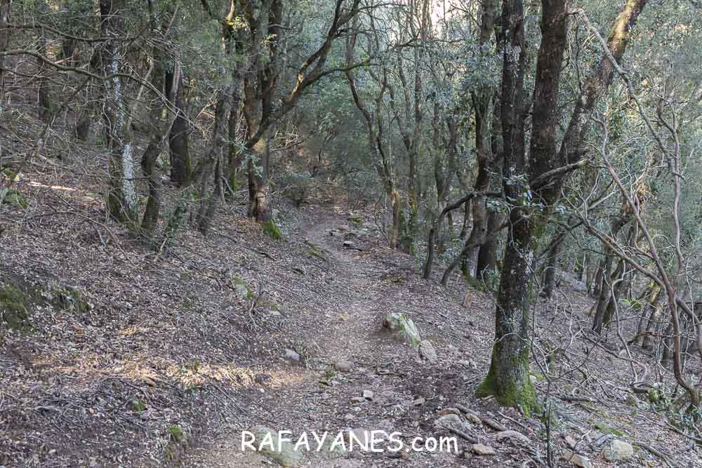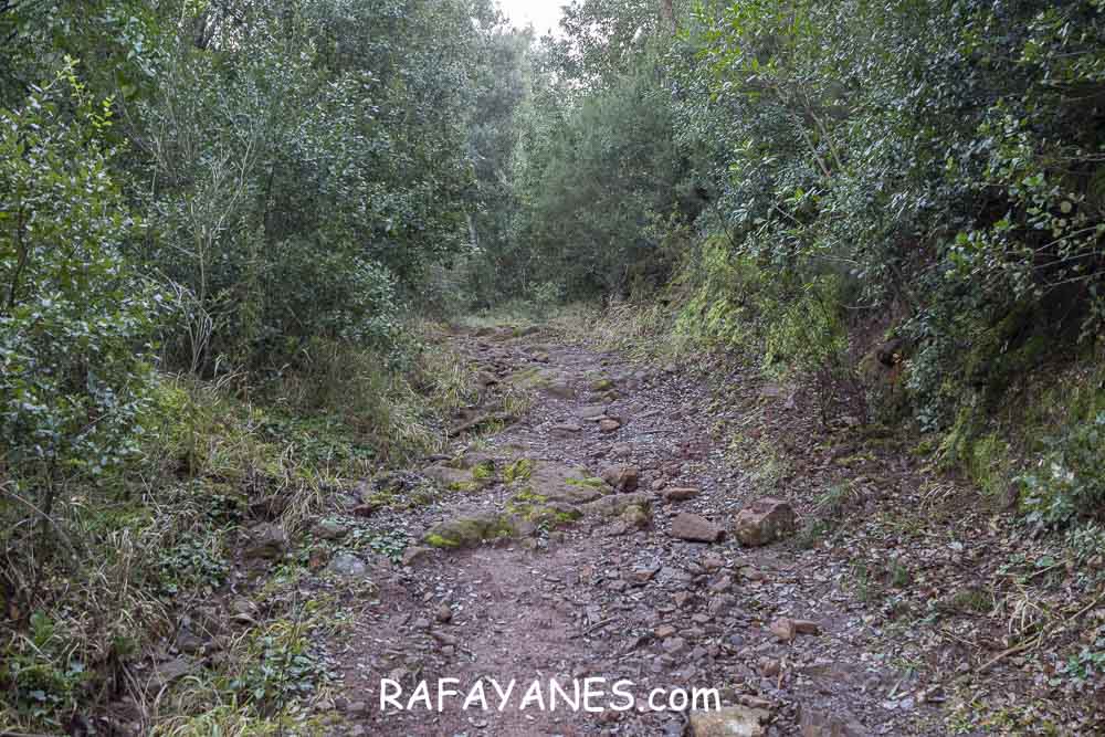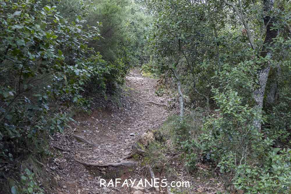 Pasado unos metros de este sendero, vuelvo a girar a la derecha para coger otro mucho más estrecho y pedregoso que me lleva hasta Pedra Centella.