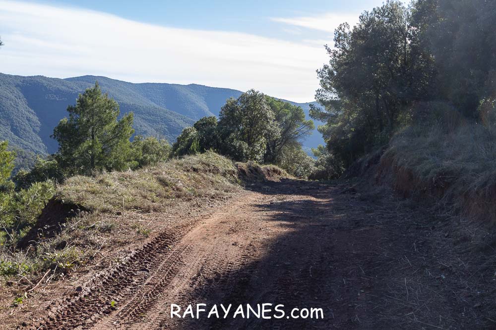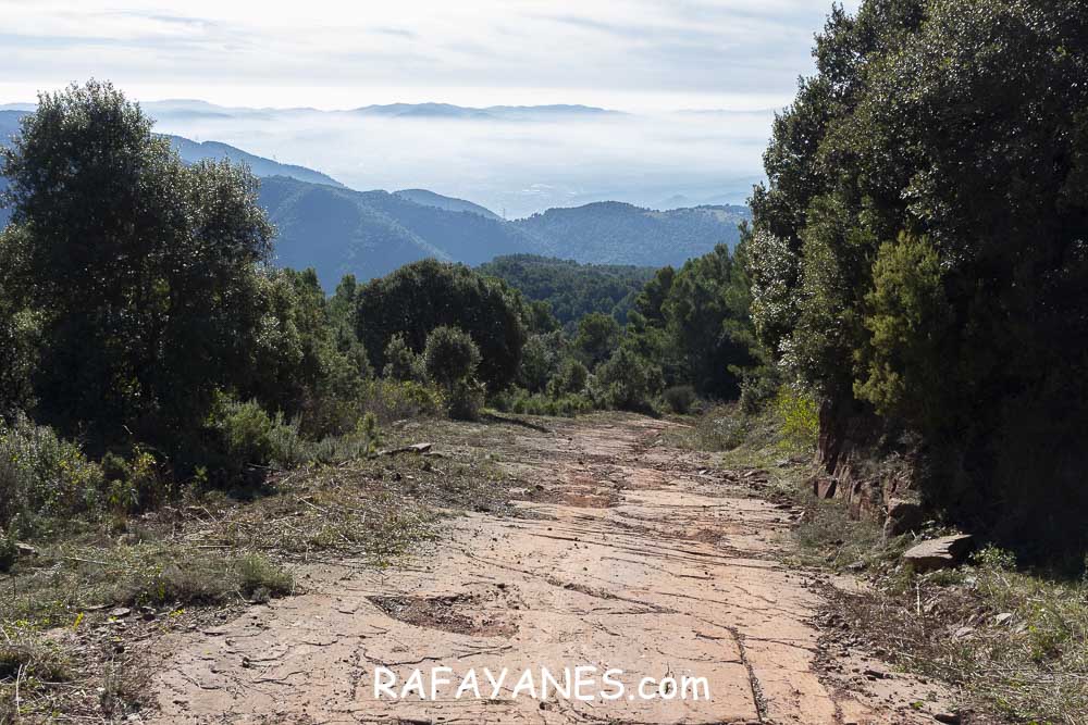 A partir de ahora, todo es bajada. Conectando con la pista que me lleva hasta la base del Turó de Tagamanent, luego girando a la izquierda y bajando por una pista de arcilla roja, llego hasta la furgo.